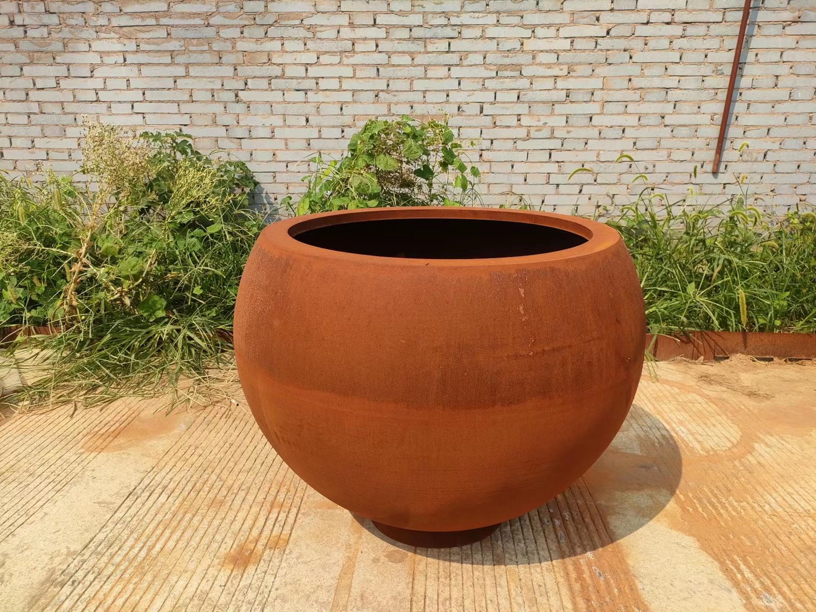 Every unit boasts meticulous craftsmanship in every detail, from its smooth spherical shape to its robust construction. It comes with a wide, continuous corten steel edge that serves two key purposes: it adds structural stability to the planter, preventing deformation even with long-term use, and it delivers a polished, cohesive look that elevates the overall design. Whether used in urban street projects or private garden landscapes, these corten steel globe tree planters blend functionality and style to create memorable, one-of-a-kind outdoor spaces.