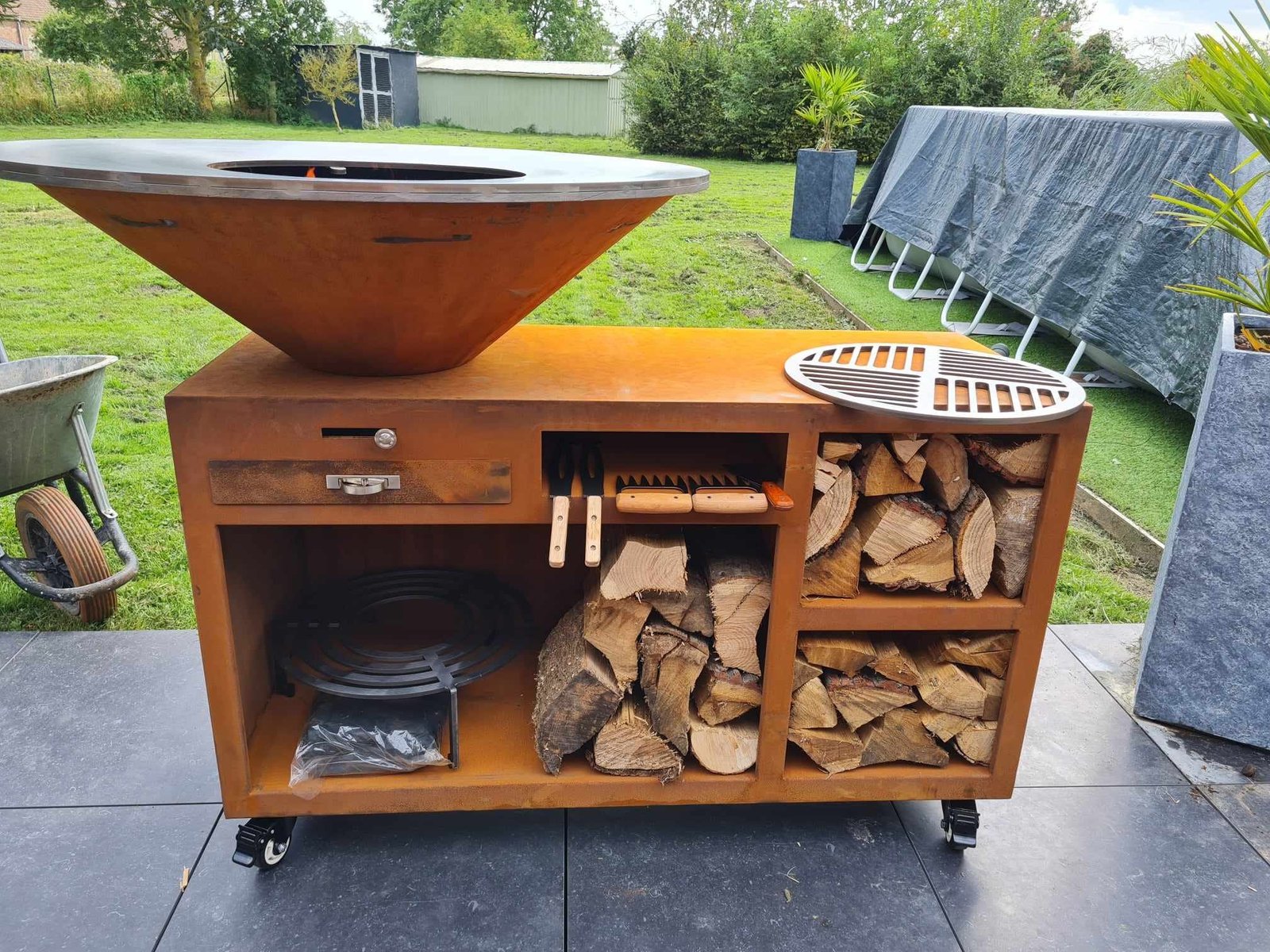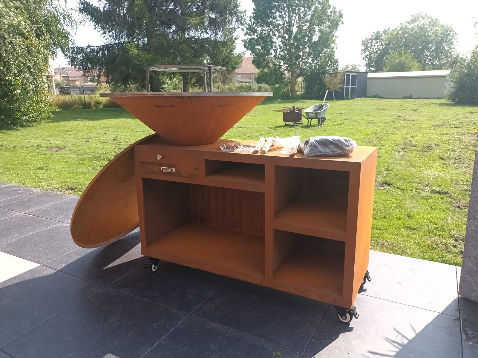 Outdoor kitchen corten steel grill